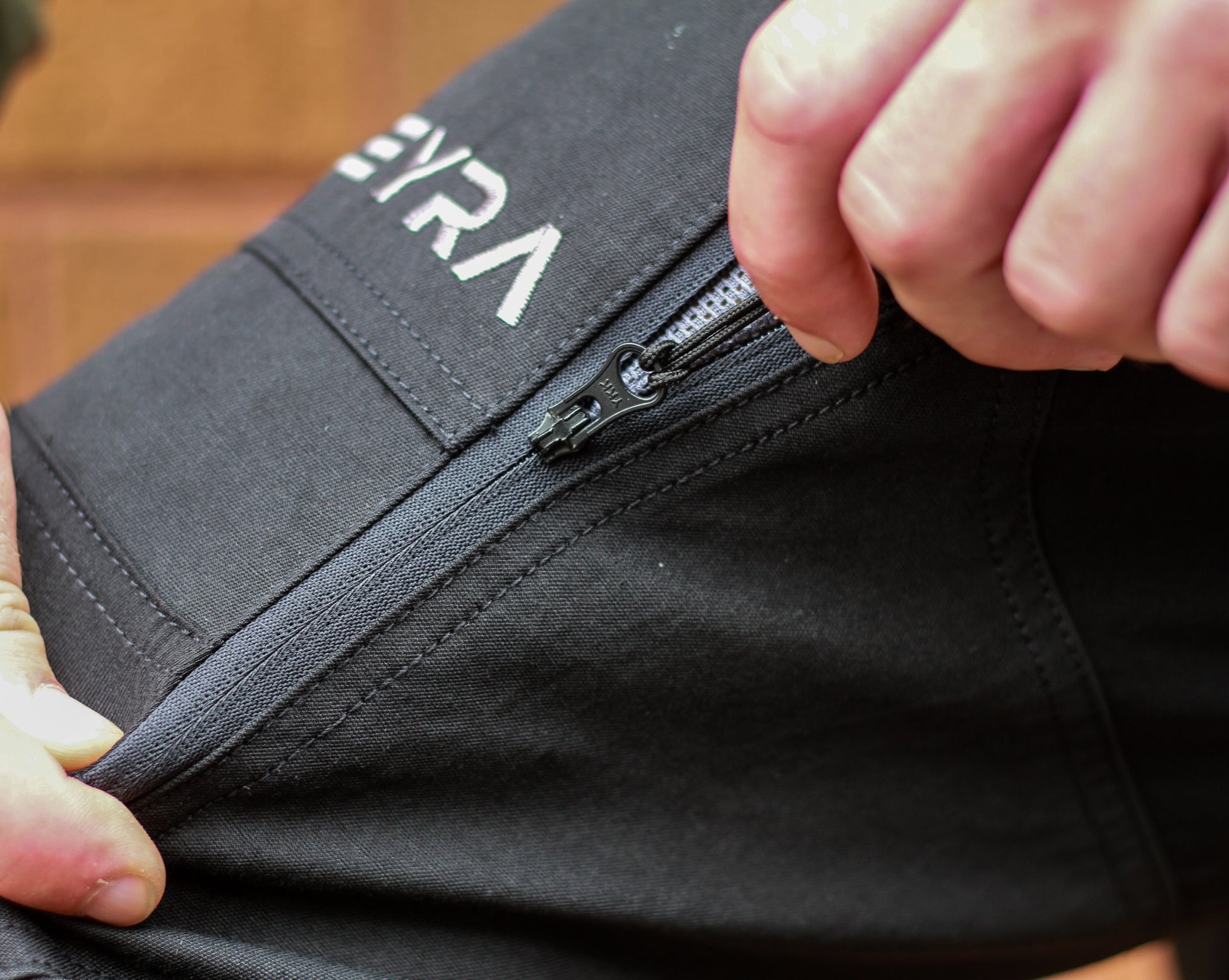 Featuring two hip pockets, two zipped thigh pockets and a rear pocket, you are well covered for storing those essential items.